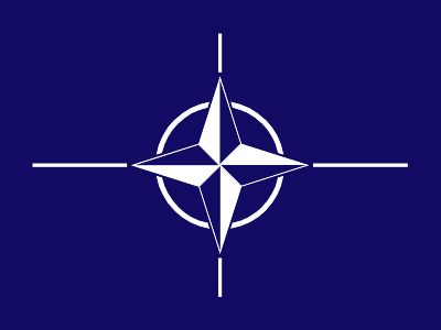 為防堵蘇聯對歐洲各國的威脅與軍事侵略,西元1949年,美國邀集西歐各國與加拿大在華盛頓簽署《北大西洋公約》,後締約國建立北大西洋公約組織(North Atlantic Treaty Organization,NATO)。該組織使美國與西歐在軍事及政治上結為同盟,共同圍堵蘇聯,以維護區域安全。下圖為北大西洋公約組織旗幟